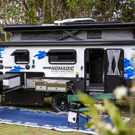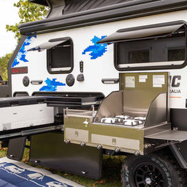 Adventure-ready and family-focused, the Norca-16 Family Hybrid Camper blends compact towing with big-trip capability. Its electric pop-top roof opens up a clever, light-filled interior featuring a king-size master bed, roomy double bunks, internal kitchenette, lounge and full ensuite. Outside, a premium stainless-steel slide-out kitchen under a large sealed awning creates the perfect family camp setup. Lightweight, easy to use and powered by POWER BOOST+, it’s built for off-grid family escapes.